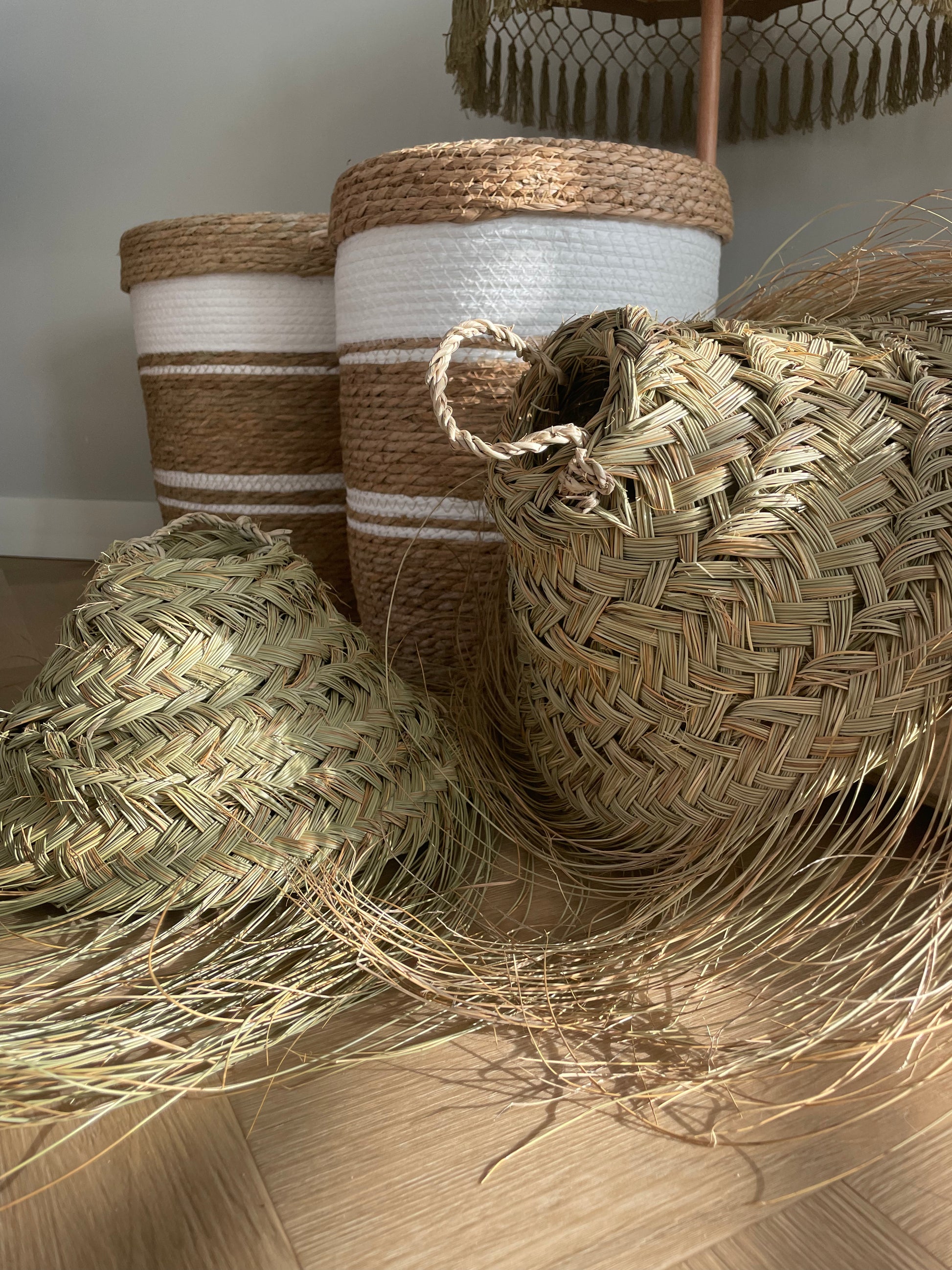 Lampenkapje van gevlochten zeegras. Handgemaakt en dus een uniek!