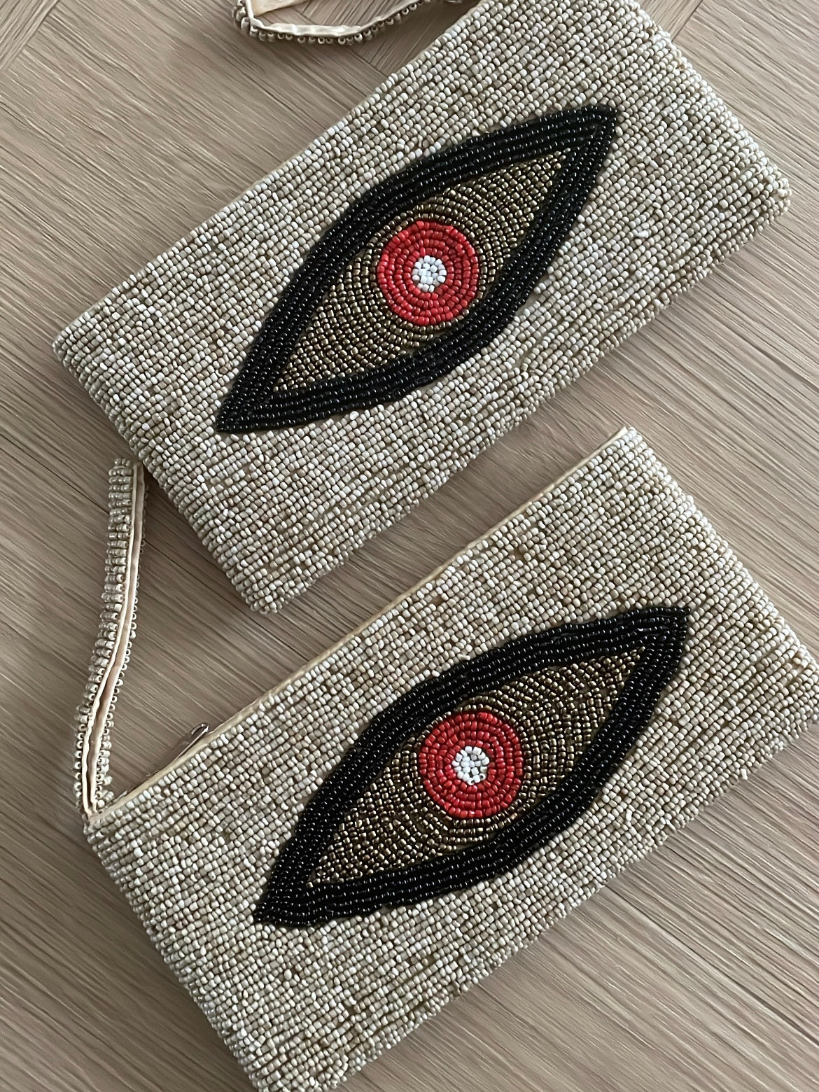 Deze beige portemonnee is met de hand gedecoreerd met kleine kraaltjes.